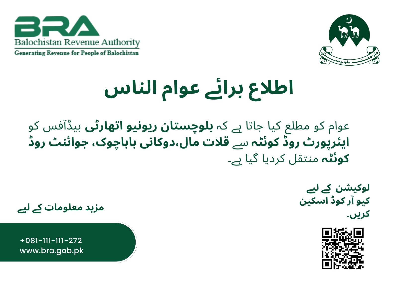 Welcome to Balochistan Revenue Authority (BRA), the autonomous body responsible for optimizing revenue collection and promoting compliance with tax and related laws in the province of Balochistan, Pakistan. Our vision is to be a modern, progressive, and credible organization, committed to providing quality service and ensuring fair taxation practices. At BRA, our mission is to enhance the capability of the tax system through the application of modern techniques and by offering extensive taxpayer assistance. We are driven by a dedicated and professional workforce, fostering integrity, professionalism, team works, courtesy, fairness, transparency, and responsiveness in all our operations. Together, we aim to build a financially sustainable future for Balochistan and its people, supporting economic growth and development for the prosperity of our nation.